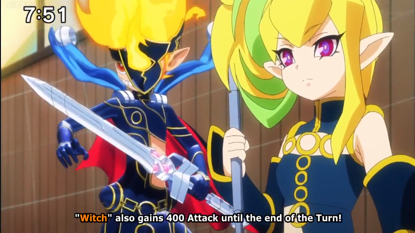 Yuga summons Dark Sorcerer, Fire Golem, and Whispering Fairy. Yuga attacks and destroys Gakuto’s set monster with Dark Sorcerer. Yuga attacks directly with his other two monsters, leaving Gakuto with 2000 life points. Yuga ends his turn.