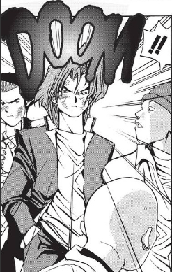 “Way to be a man!” says Jonouchi, “Just leave the fighting to us! Check out the right way to punch!”