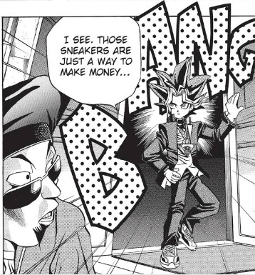 Jonouchi is just happy Yugi got the sneakers. “I’ll consider this hole a battle scar,” he says as he frolics down the street with them once again.