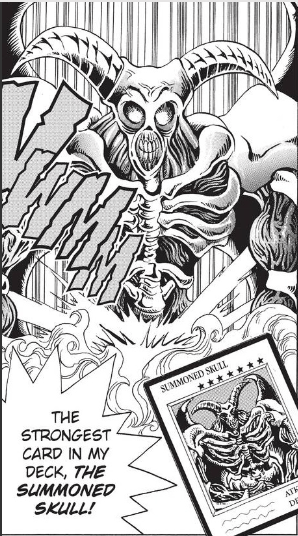 The card he draws is Summoned Skull, the strongest card in his deck. Yugi summons his monster, which puts Kaiba in a state of shock.
