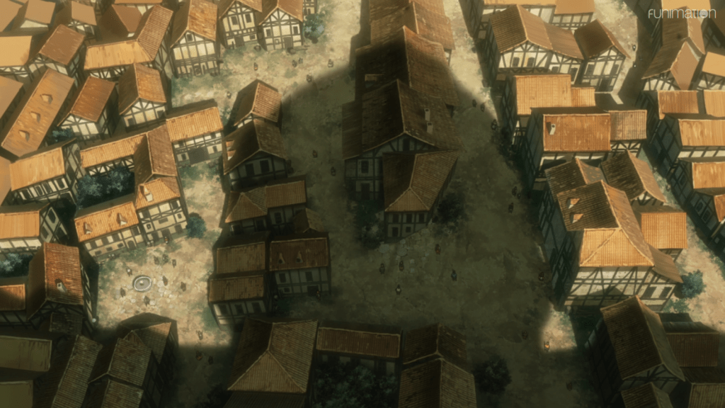 Eren moves out with his squad into the city of Trost to help fight the titans while the people escape.