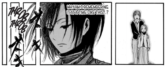 Why am I remembering it at a time like this? thinks Mikasa.