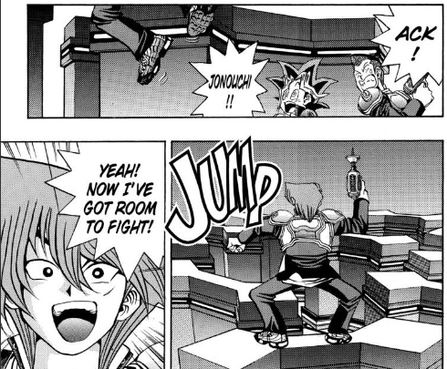 “Yugi, this game is rigged,” says Honda, “Our guns are useless! There’s no way we can win!”