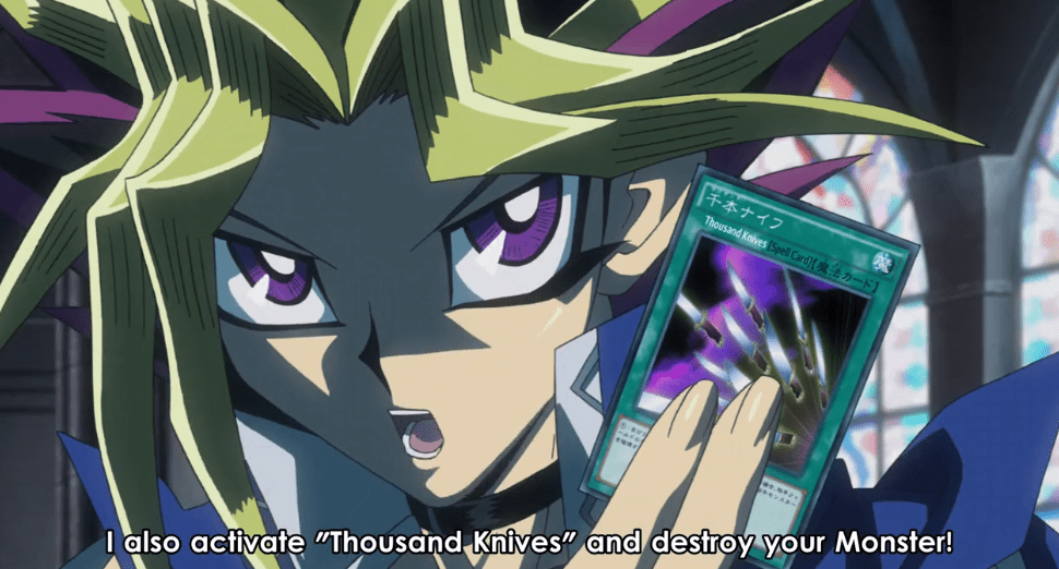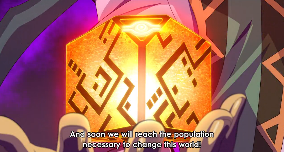 Whereas the Pyramid of Light is a simple tool, we have Aigami’s Quantum Cube, which is the eighth and hidden Millennium Item. It shares the former’s ability to send victims to another dimension, although this time, its choices are more diverse in that it uses its victims’ memories to build a world that suits their senses – and the effects much deadlier. Not only are victims dragged into the device, but they also gradually disintegrate into small pieces. Apparently, it’s also capable of absorbing the power of different Millennium Items, and Kaiba uses it in the end to travel back in the past to duel his biggest rival, the result of which is never released. So basically, this makes its user like Thanos with the Infinity Gauntlet, except the rules are more vague and unstable, as evidenced with how Aigami seems to make up its use at every turning point. I wonder what happens if you collect all the Millennium Items and bond them together, does it make a giant spaceship?