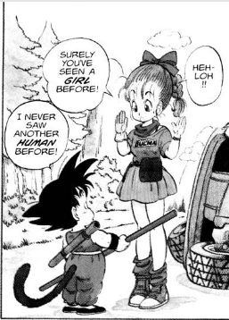“I was just checking to see if you had a tail,” responds Goku. It was then that the girl noticed the tail sticking out of Goku’s rear end. What a weirdo, thinks the girl.